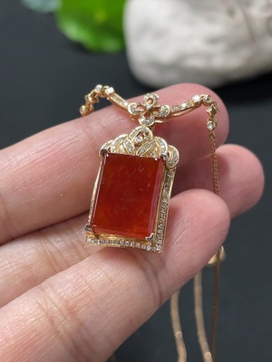 F33933407 Jadeite Inlaid Pendant (Au 37% Content, Total Weight Approx. 1.3g)