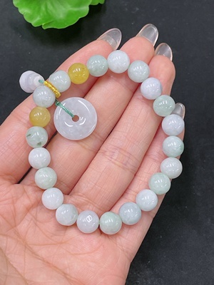 F36254801 Jadeite Bead Inlaid Bracelet Approx. 8.2mm Total Weight Approx. 5.88g Yellow Bead Non-A