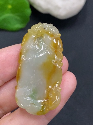 F34981554 Jadeite Guanyin Pendant Total Weight Approx. 83.7g (including rope weight) (yellow part color origin undetermined)