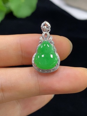 F33836012 Jadeite Gourd Pendant with 18K Gold and Diamond Accents, Total Weight Approximately 1.88g