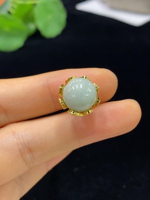 F35180760 Jadeite Cabochon Inlay Ring Non-Gold Inlay Adjustable