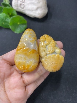 F34966145 Jadeite landscape pendant, total weight about 26.4g (including rope weight) (yellow part color origin undetermined) (beads non-A)