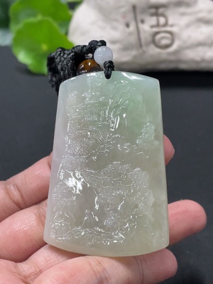 F33918661 Jadeite Pendant Landscape Plaque Delight in the Eyes