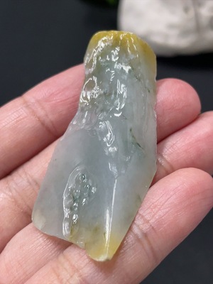 F34018984 Jadeite freeform pendant, total weight approximately 14.7g, yellow color origin undetermined