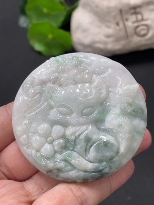 F36278708 Jadeite Nine-Tailed Fox Pendant Total Weight Approx. 81.34g