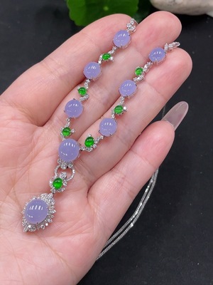 F35180892 Jadeite inlaid necklace 18K gold total weight about 11.7g (with diamond accents)