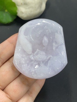 F18012887 Jadeite Lotus Leaf Fish Pendant