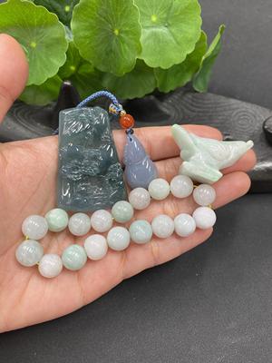 F1258866 JadeitePendant + Bead Necklace, Individual Pieces May Have Cracks