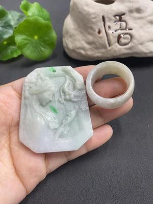 F0823979 Jadeite Ring + Pendant Set (with grain cracks, size 24)