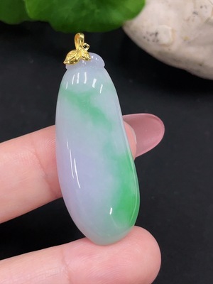 F27120788 Jadeite Bean Pendant with 18K Gold and Diamond Accents, Total Weight Approx. 5.91g