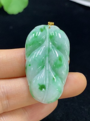 F35176610 Jadeite Leaf Pendant 18k Total Weight Approx. 8g