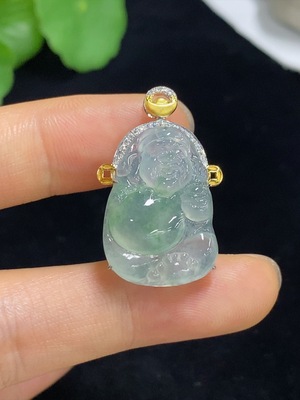F37441714 Jadeite Buddha Pendant with 18K Gold Setting, Total Weight Approx. 2.7g (Diamond Accents)