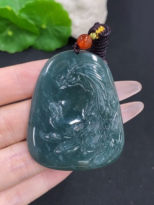 F38524082 Jadeite Phoenix Pendant Total Weight Including Rope Approx. 28g (Matching Beads Non-Grade A)