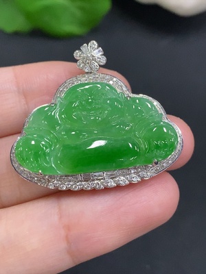 F35198158 Jadeite Buddha Pendant with 18K Gold Mount, Total Weight Approx. 6.2g (Diamond Accented)
