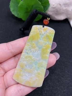 F34966145 Jadeite landscape pendant, total weight about 26.4g (including rope weight) (yellow part color origin undetermined) (beads non-A)