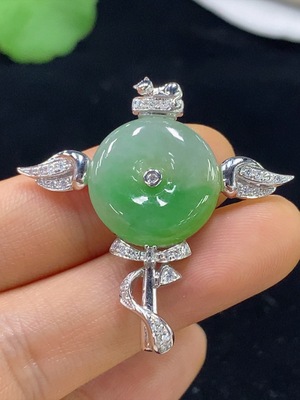 F35135356 Jadeite Peace Knot Inlaid Pendant with 18k Gold and Diamond Accents, Total Weight Approximately 7.08g
