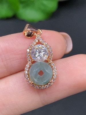 F20308545 Jadeite Gourd Pendant with 18K Gold Clasp, Total Weight 2.668g