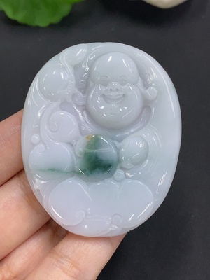 F35163719 Jadeite Buddha Pendant Total Weight Approx. 45.8g