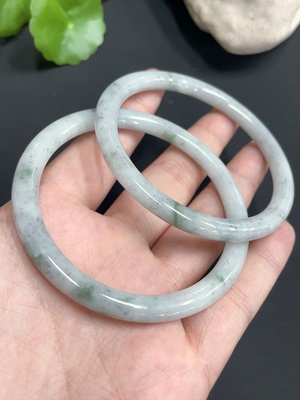 F15619388 JadeiteRound Bangle Bracelet Size 58.3/58.3 Set of 2 Pieces