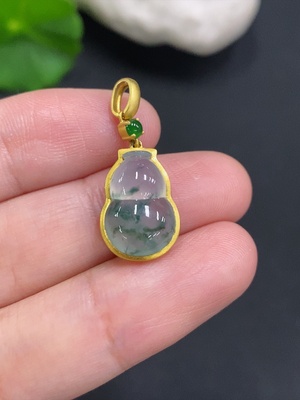 F35105876 Jadeite Gourd Inlaid Pendant 18K Gold Total Weight Approx. 2.4g