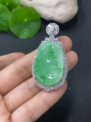 F35172778 Jadeite Ruyi Head Pendant Total weight approx. 9.76g