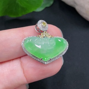 F31591395 Jadeite Ruyi Inlaid Pendant, 18K Gold, Colorless Diamond Accents, Total Weight Approx. 3.08g