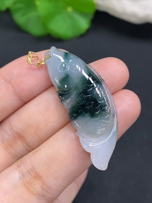 F29434316 Jadeite Auspicious Fish Pendant with 18K Gold Clasp, Total Weight Approx. 4.8g