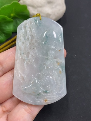 F25904721 Jadeite Auspicious Longevity Pendant, Total Weight Approximately 30.8g (Non-Gold Inlaid)