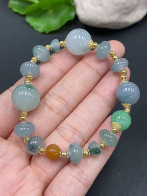 F36247382 Jadeite Beads Sell as a Lot 9pcs Total Weight Approx.30.97g with Small Bag