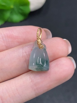 F34060588 Jadeite Lotus Pod Pendant with 18k Gold Clasp, No Stamp, Surface Gold Content Tested, Total Weight Approximately 2.2g