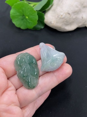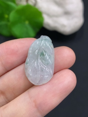 F37444034 Jadeite Lotus Leaf Pendant Total Weight About 3.5g