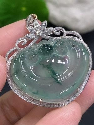 F32808871 Jadeite Inlaid Pendant 18K Gold Gross Weight Approx. 18.6g (With Diamond Accents)