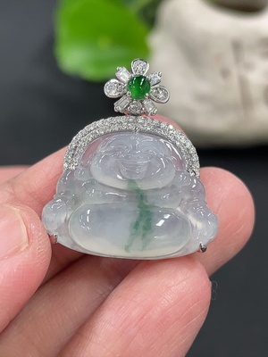 F38517586 Jadeite Buddha Pendant with 18K Gold and Diamond Accents, Total Weight Approx. 5.24g