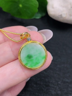 F30558558 Jadeite Pendant with 18K Gold and Diamond Accents, Total Weight Approximately 2.18g