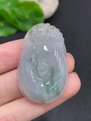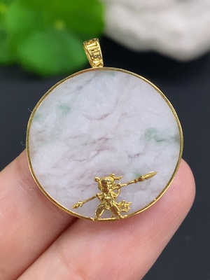 F31645911 Jadeite Fu Gua Pendant with 18k Gold Clasp, Total Weight Approximately 5.1g
