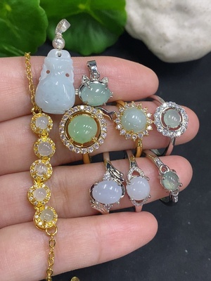 F37383102 Jadeite Pendant with Bracelet and Ring Sell as a Lot Adjustable Size Non-Gold Inlaid