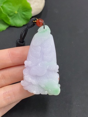 F26004341 Jadeitelandscape pendant with a total weight of approximately 16.6 grams (accompanying beads non-Grade A)