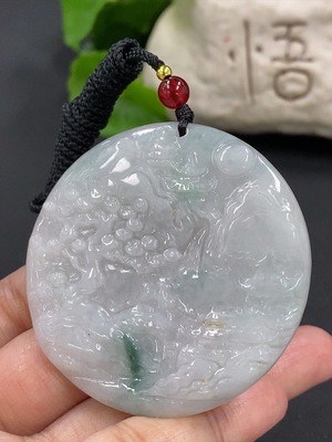 F38479179 Jadeite Landscape Pendant with a total weight of approximately 32.1 grams (including rope weight)