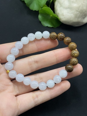 F36277603 Jadeite Bracelet Unmarked Gold Content 91% Total Weight Approx. 16.25g Size About 8.1mm