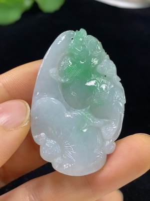 F36249135 Jadeite Lotus Leaf Fish Pendant Total Weight Approx. 47.17g