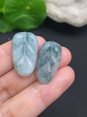 F35173432 Jadeite Rough Leaf Inlaid Pieces Sell as a Lot