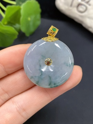 F12320361 Jadeite Safety Pendant with 18K Gold Bail