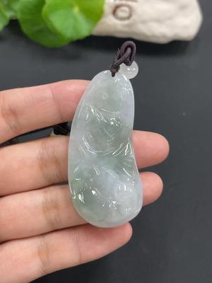 F30530582 Jadeite Lotus Leaf Fish Pendant Total Weight About 5.79g