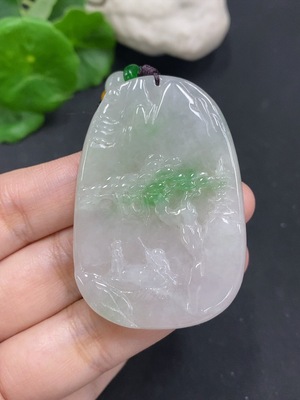 F37383537 Jadeite Landscape Pendant Total Weight Approx. 35.5g (Including Rope Weight) Beads Not Jadeite