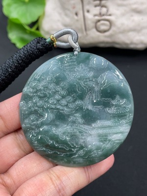 F38489072 Jadeite Landscape Pendant Total Weight Approx. 29.2g (including rope weight)