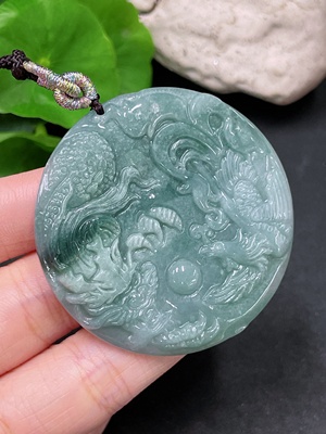 F34959184 Jadeite Dragon and Phoenix Auspicious Pendant, Total Weight Including Rope Approximately 32.7g