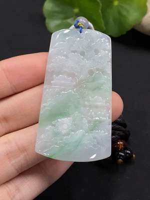 F36278977 Jadeite Pendant Landscape with Non-A Beads Including Cord Total Weight Approx. 15.51g