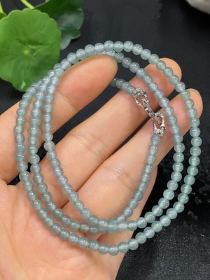 F33868155 Jadeite Bead Necklace Approx. 3.5mm Total Weight Approx. 12g Non-gold Setting Color Origin Undetermined