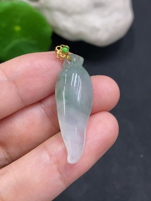 F34022266 Jadeite Auspicious Gourd Pendant with 18K Gold Clasp, Total Weight 3.3g