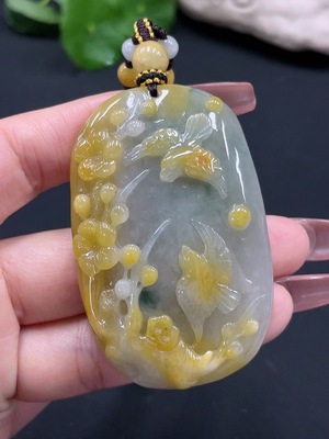 F27115373 Jadeite Magpie on the Plum Blossom Pendant, color origin undetermined, total weight approximately 74.03g